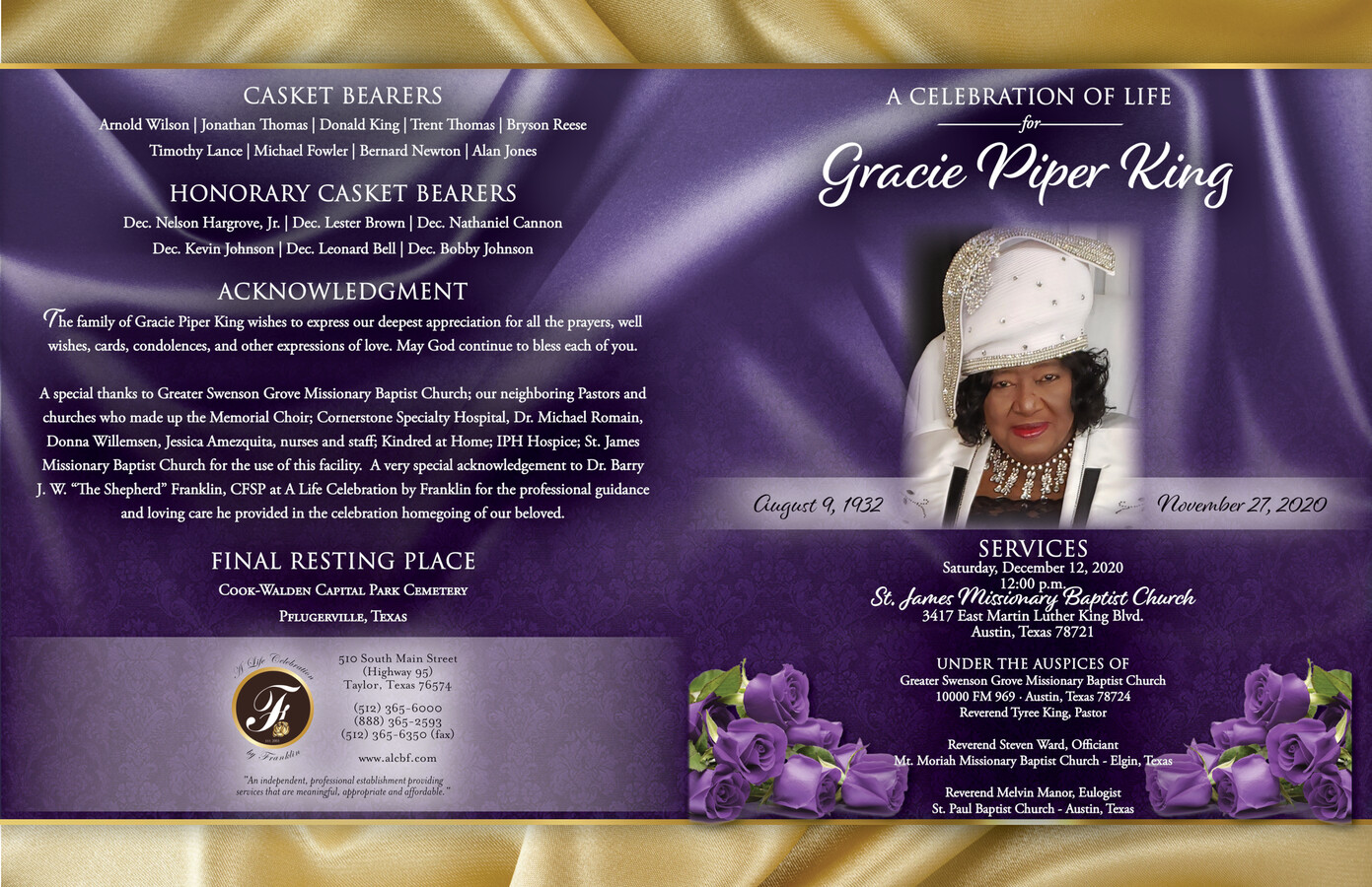 A Life Celebration By Franklin Gracie King Funeral Program by Barry