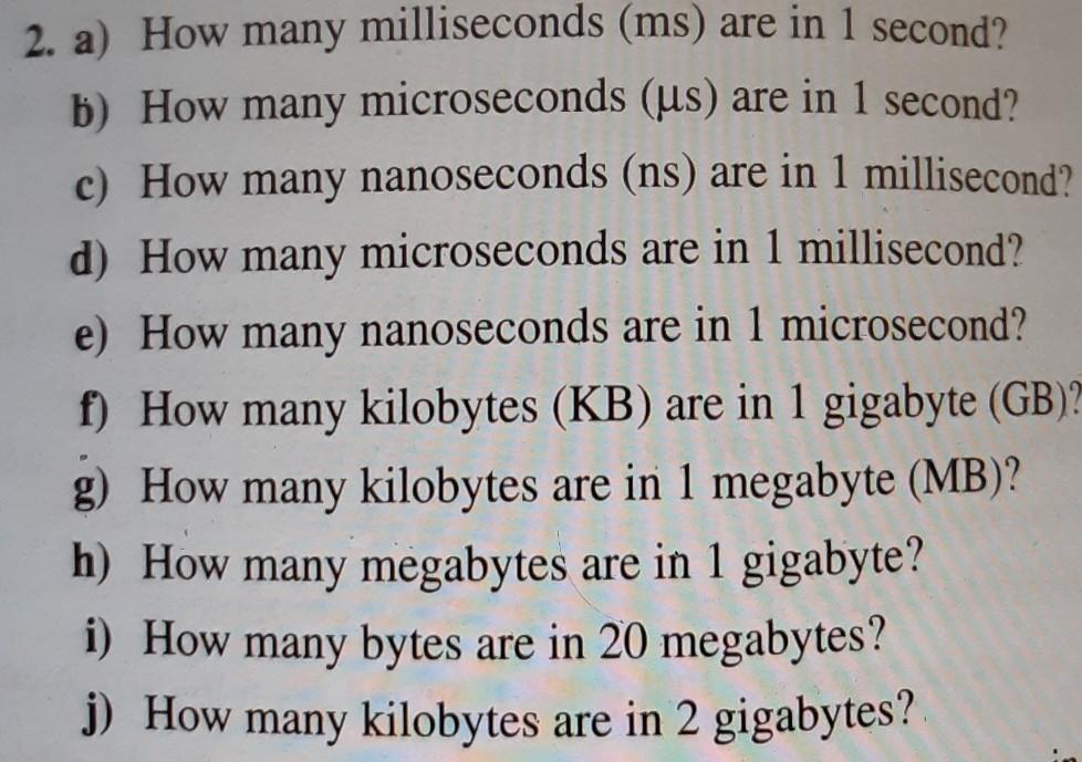 Solved 2. a) How many milliseconds (ms) are in 1 second? b)