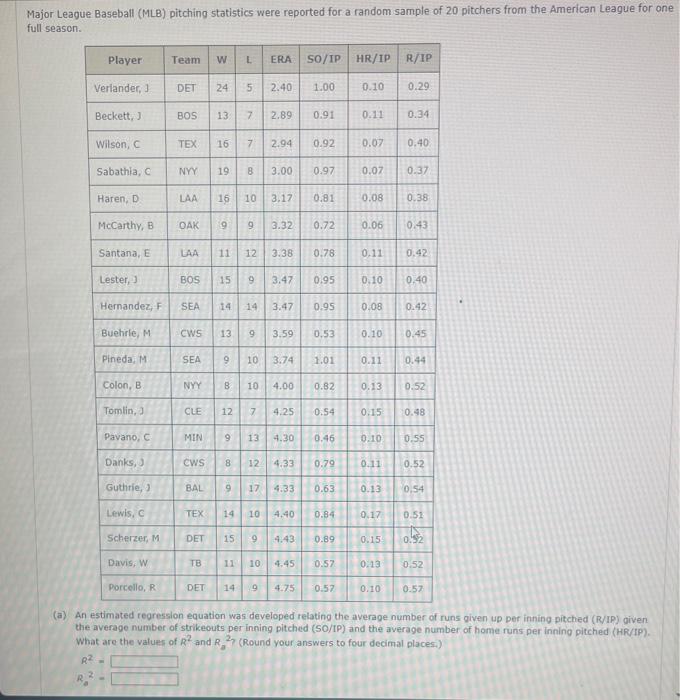 Solved Major League Baseball (MLB) pitching statistics were