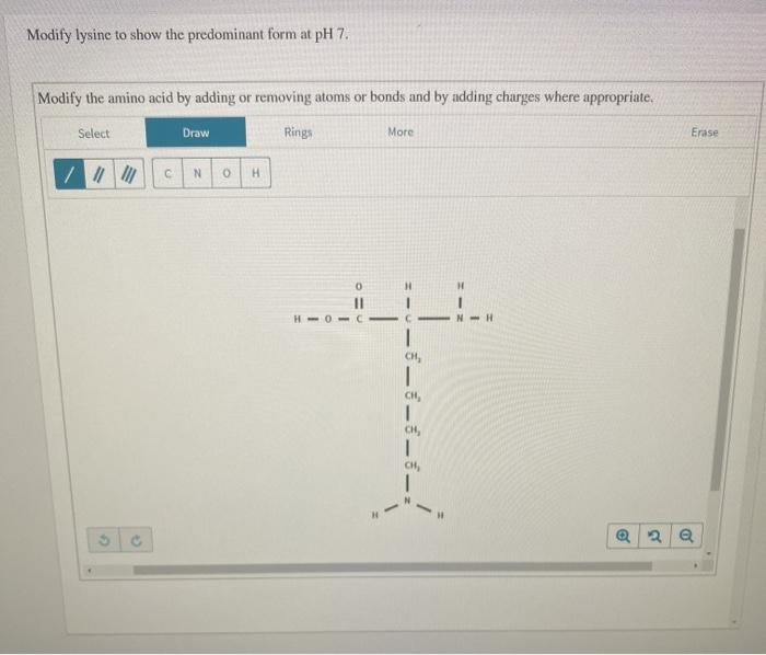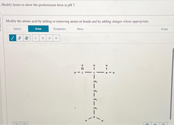 Modify lysine, below, to show the predominant form at pH 7. Quizlet