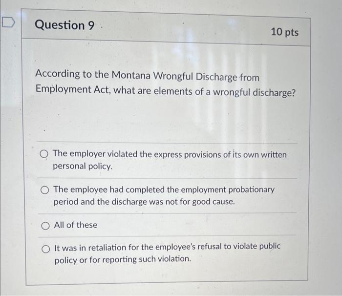 Solved According to the Montana Wrongful Discharge from