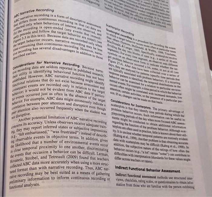 The different forms are abc continous recording, abc narrative recording, and scatterplots. One of them is called abc continuous recording, and the other is abc. Antecedent behavior consequence data (i.e. Abc continous recording is when an observer.