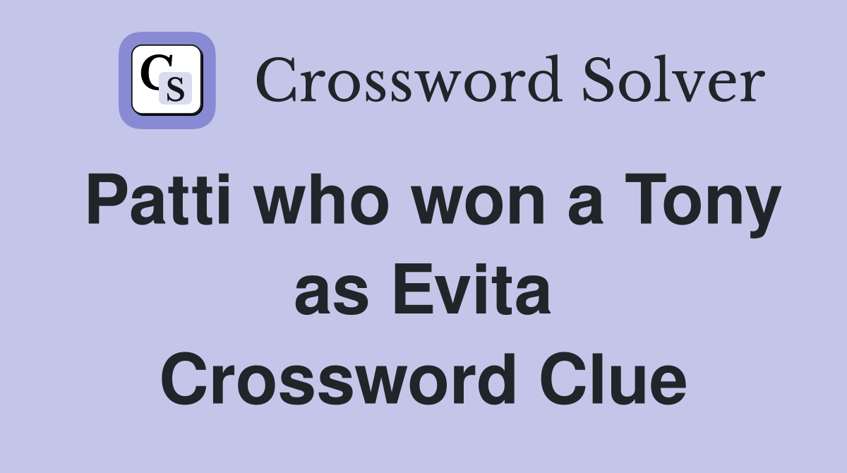 Patti who won a Tony as Evita Crossword Clue Answers Crossword Solver
