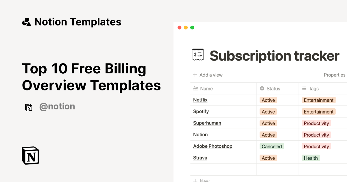 Top 10 Free Billing Overview Templates Notion Template Gallery
