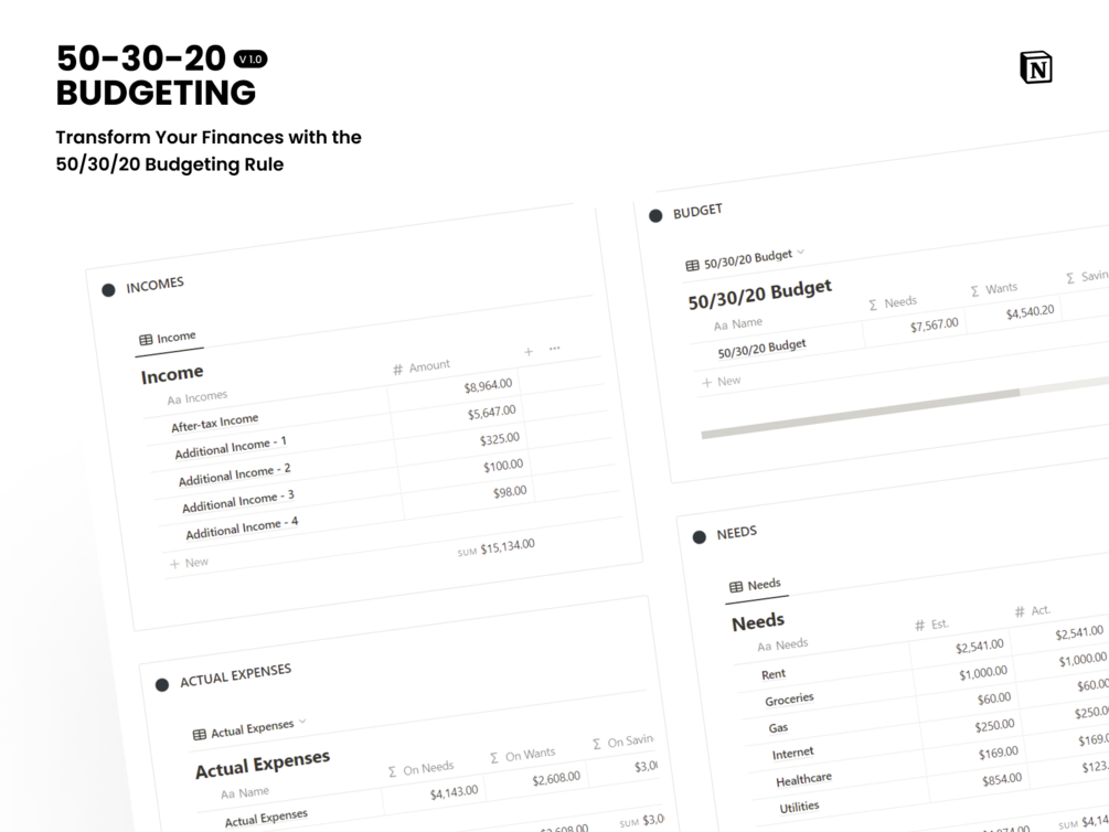 Notion Budgeting Template (50/30/20 Rule) Notion Template