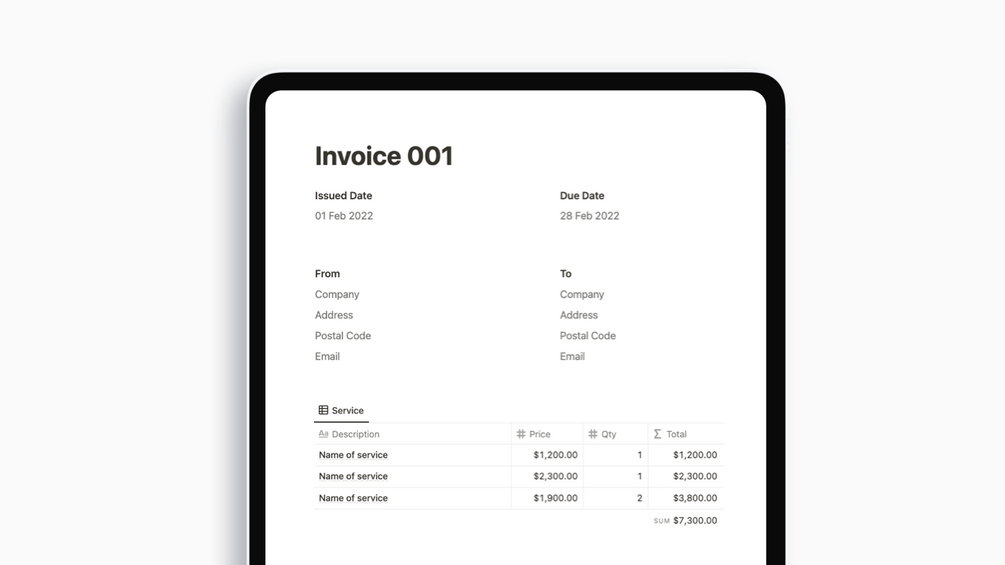 Notion Invoice Template