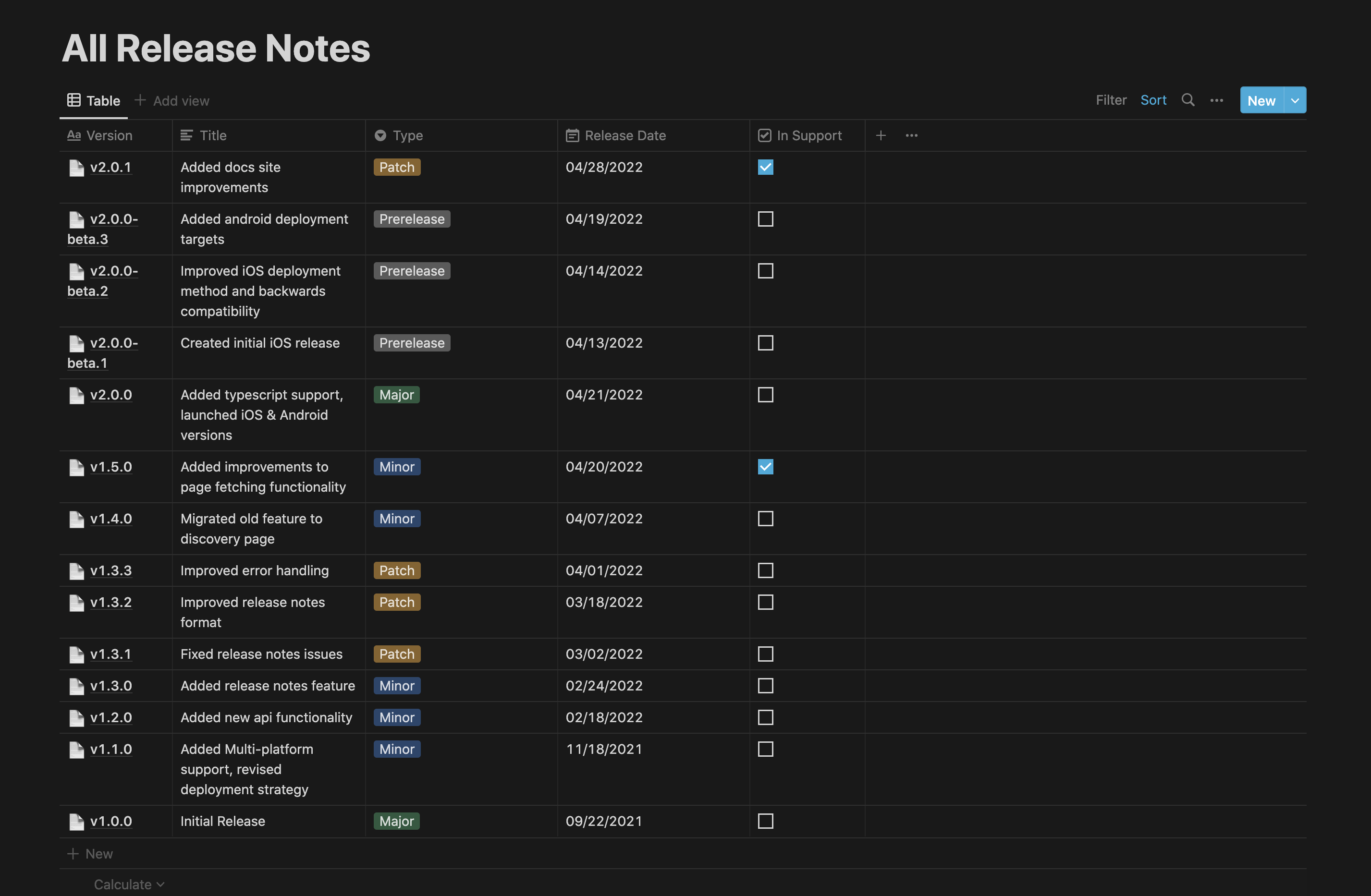 Release Notes with Notion