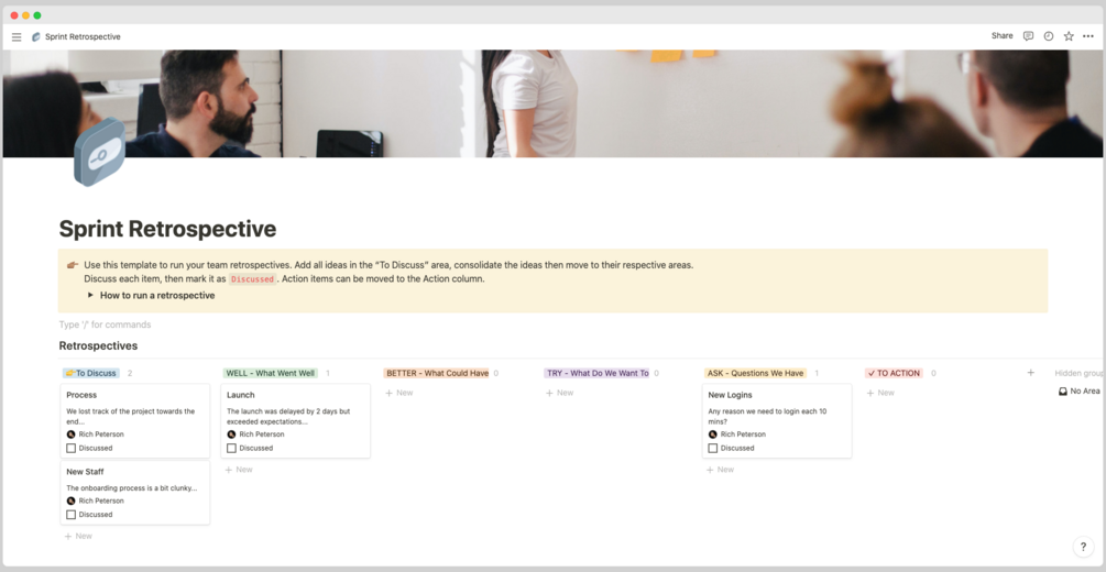 Notion Sprint Retrospective Template