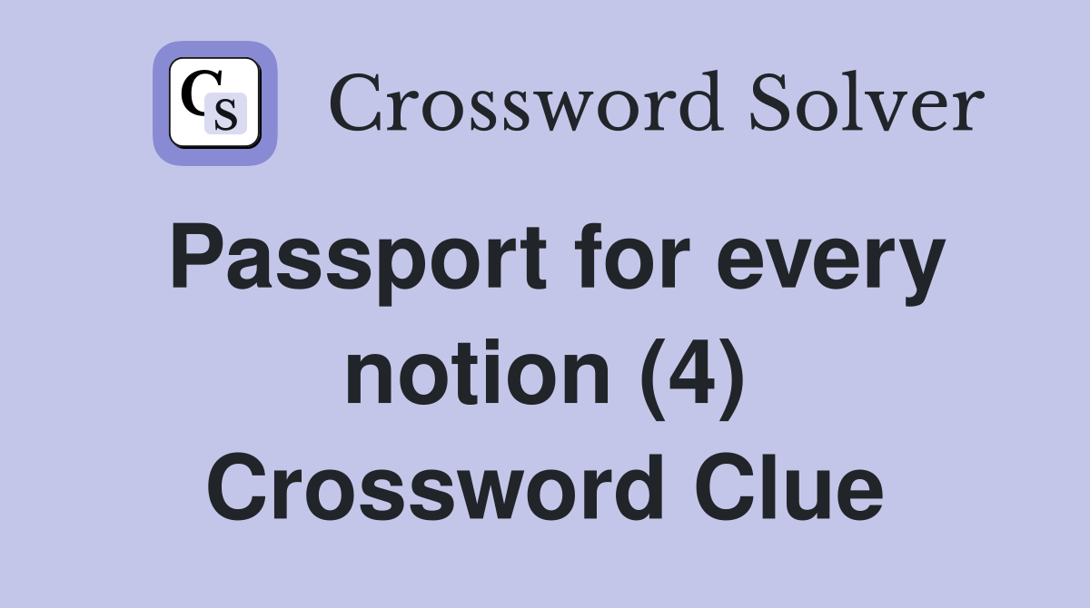 Passport for every notion (4) Crossword Clue Answers Crossword Solver