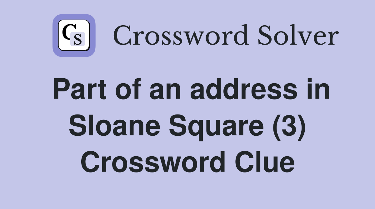 Part of an address in Sloane Square (3) Crossword Clue Answers