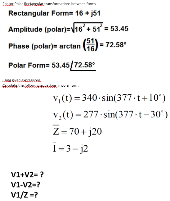 Solved Phasor PolarBestangular transformations between