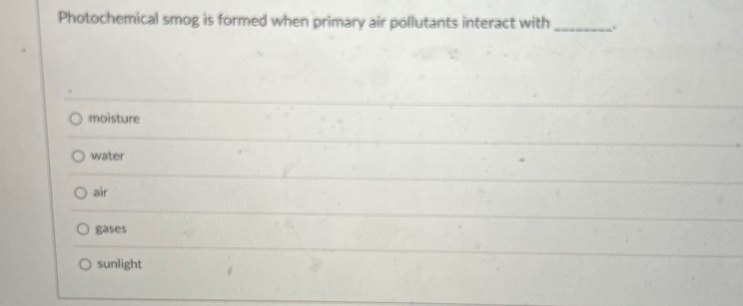 Photochemical Smog Is Formed When Primary Pollutants Interact With