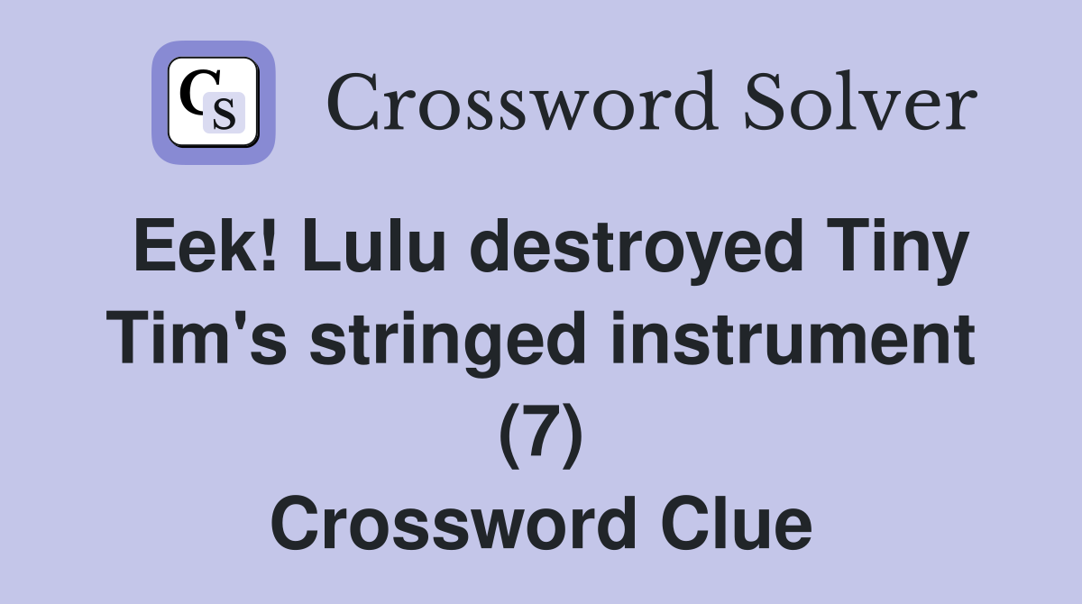 Eek! Lulu destroyed Tiny Tim's stringed instrument (7) Crossword Clue