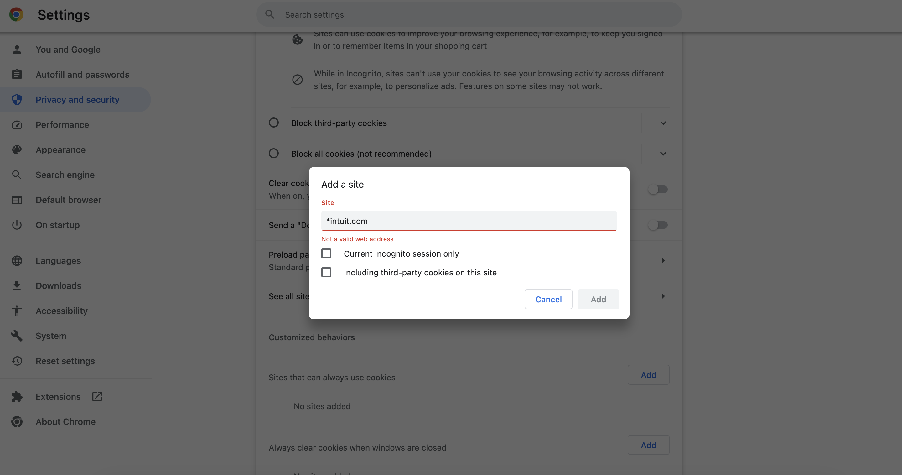 Quickbook Privacy error