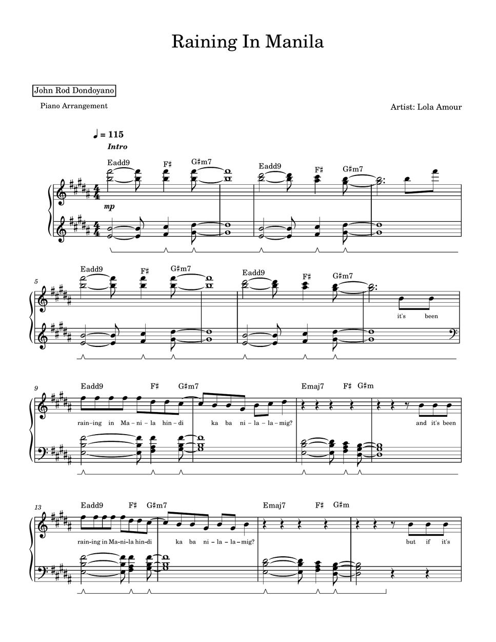 Lola Amour Raining In Manila (PIANO SHEET) Sheets by John Rod Dondoyano
