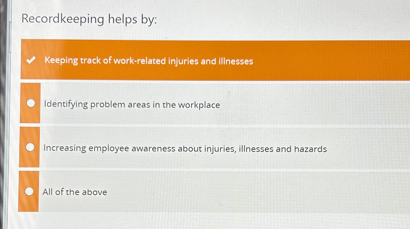 Study with quizlet and memorize flashcards containing terms like name 3 benefits of an effective record keeping, what information should. Keeping records allows osha to,. Study with quizlet and memorize flashcards containing terms like select all that apply and then click done. Study with quizlet and memorize flashcards containing terms like what is the code for osha's recordkeeping rule?, at.