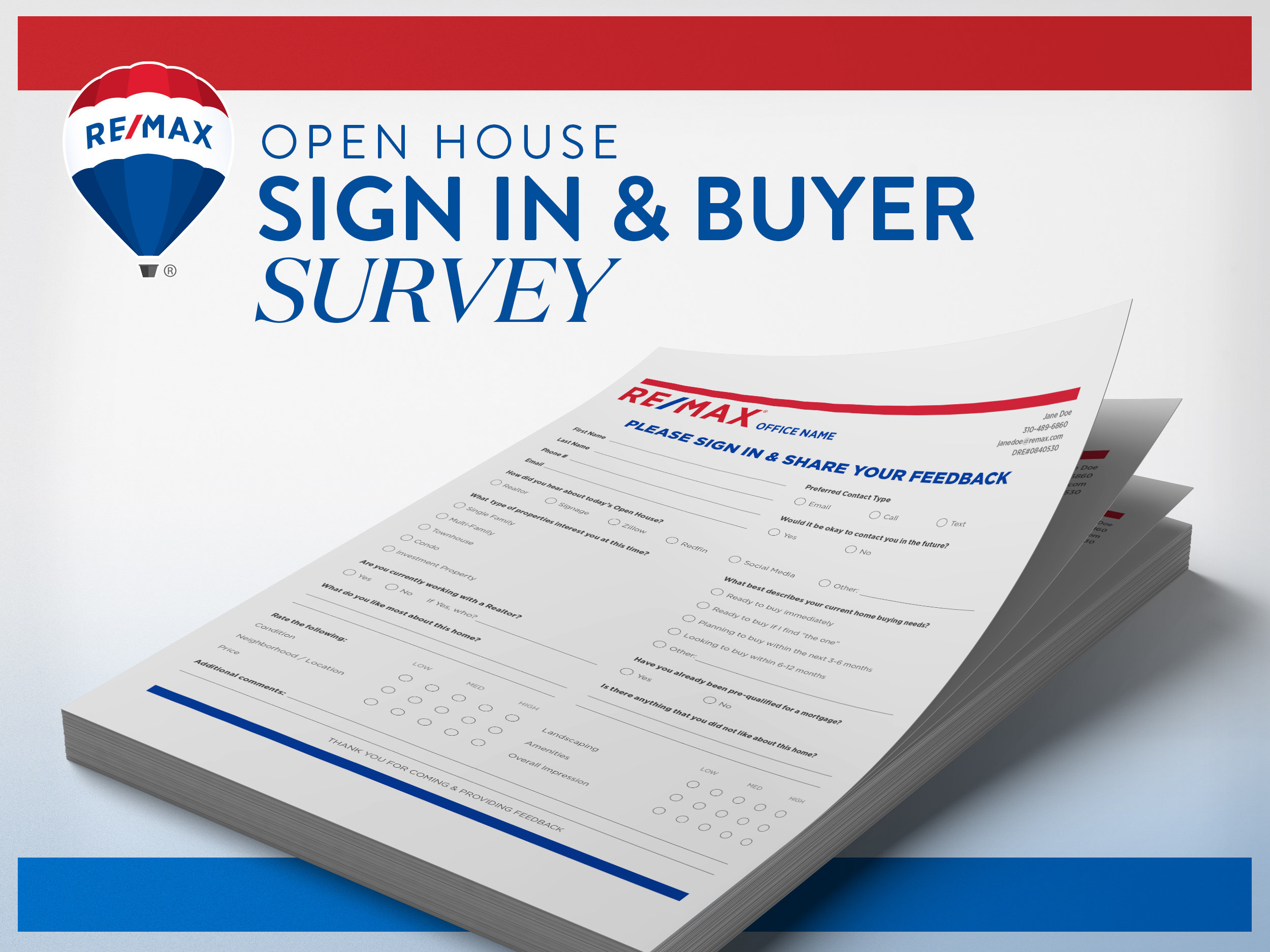 REMAX Open House Sign in & Printable Buyer Survey, Buyer Feedback Form