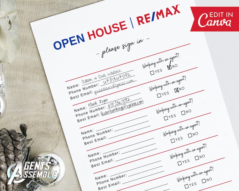 Remax Open House Sign in Sheet Open House Sign in Sheet Real Etsy