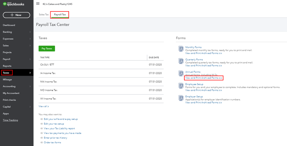 Reprint Old W2S In Quickbooks Online
