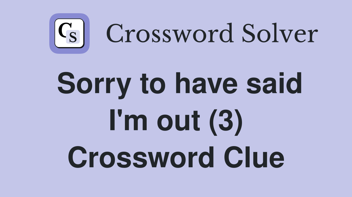 Sorry to have said I'm out (3) Crossword Clue Answers Crossword Solver