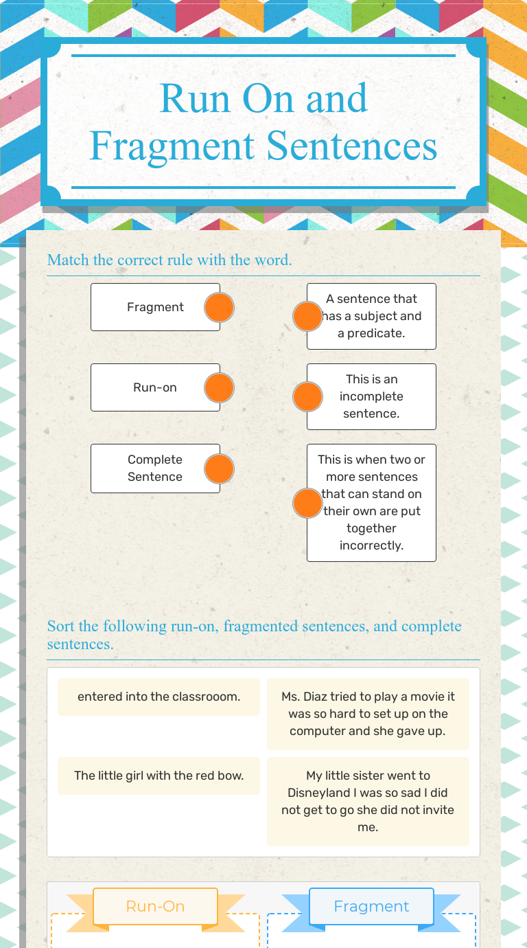 Run On and Fragment Sentences Interactive Worksheet by Elizabeth Diaz