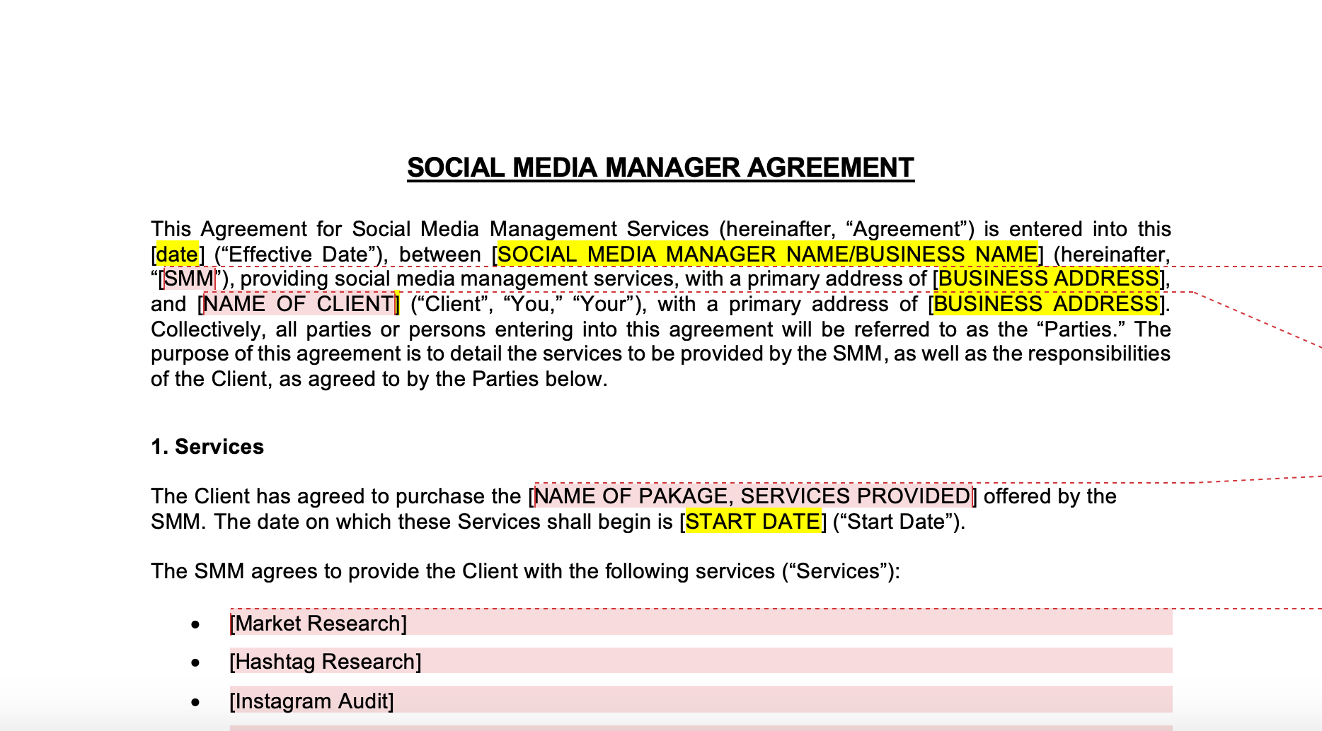 Social Media Manager Contract Template Contract template, Social