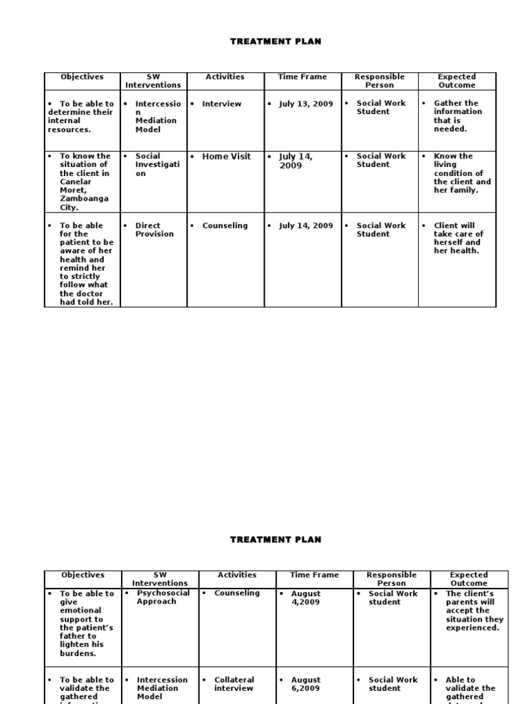 It is a crucial component of mental health treatment,. Objectives should specify who will do what, by when, and how often. Welcome to our library of free social work assessment tools and templates designed for social workers, therapists, mental. Treatment plan developed by a social worker to address a client's mental health issues.