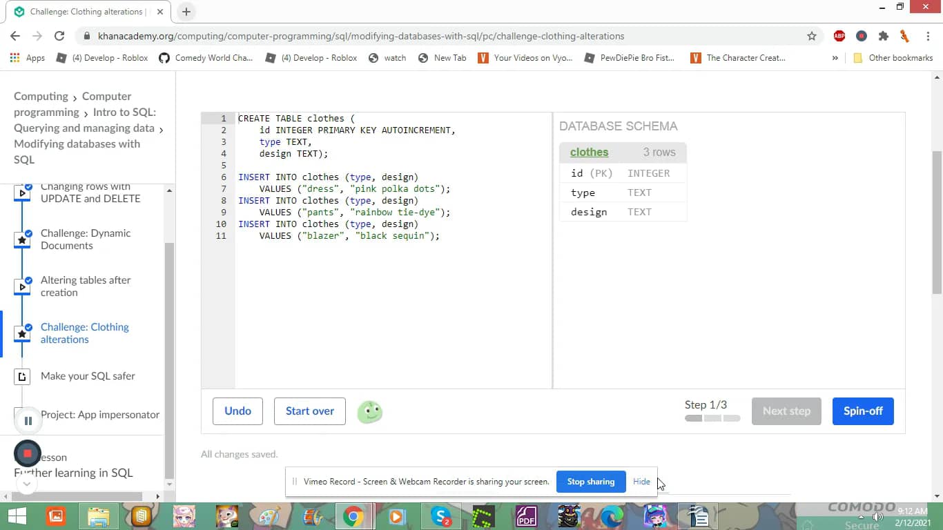 Khan Academy Challenge SQL Challenge Clothing alterations on Vimeo