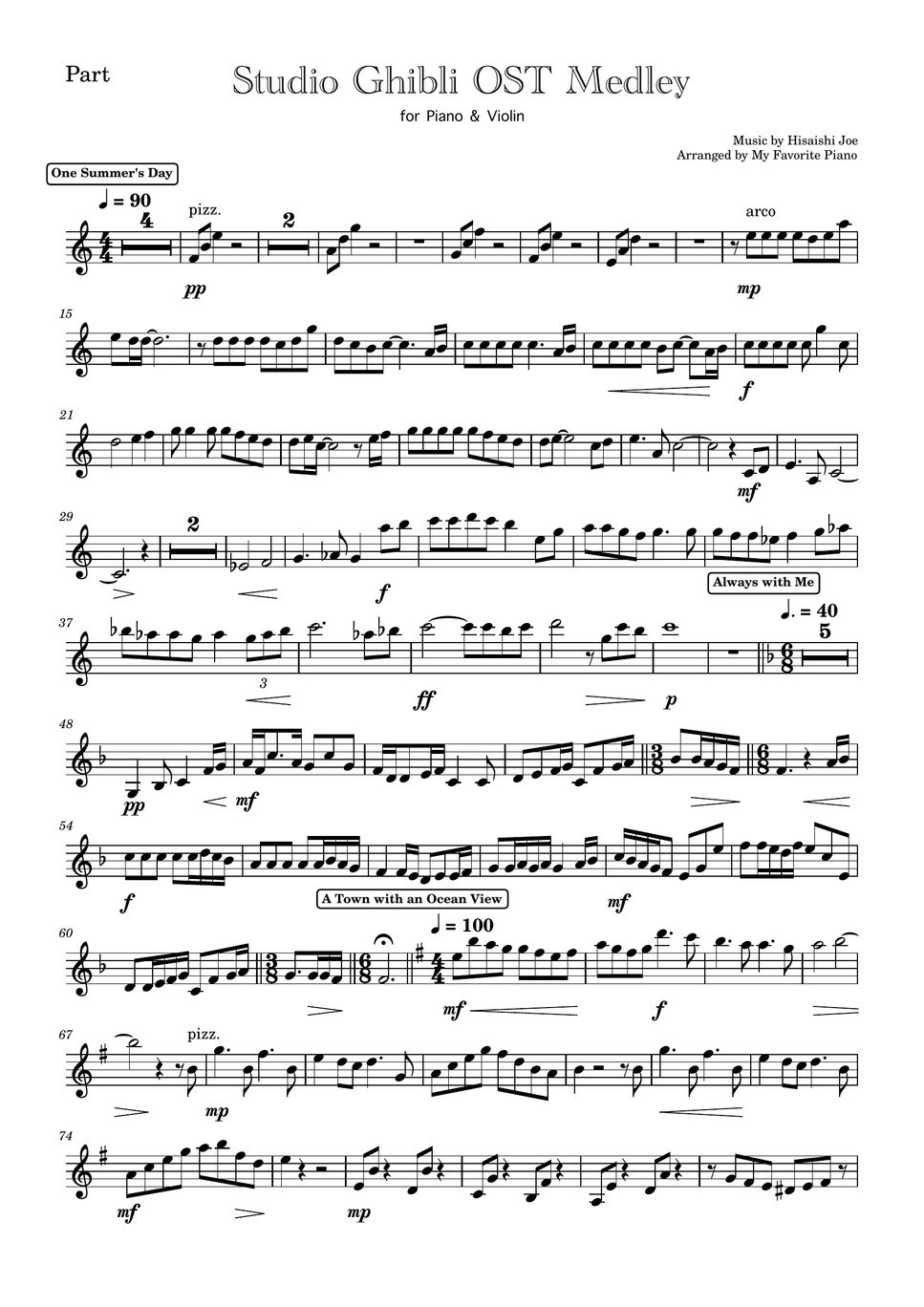 8 arrangements for solo violin and piano in. Themes and music from studio ghibli films.