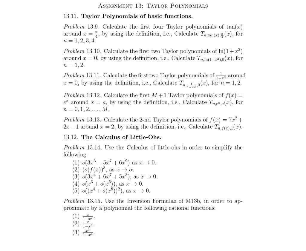 Solved Assignment 13 TAYlor Polynomials 13.11. Taylor