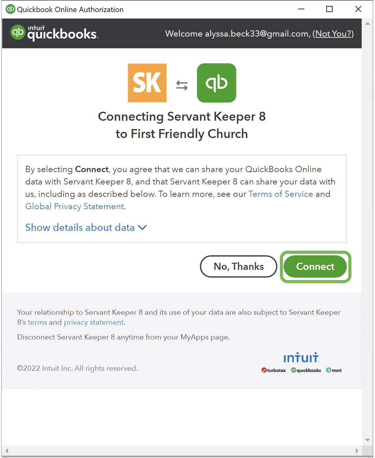 SK8 Linking with QuickBooks Online