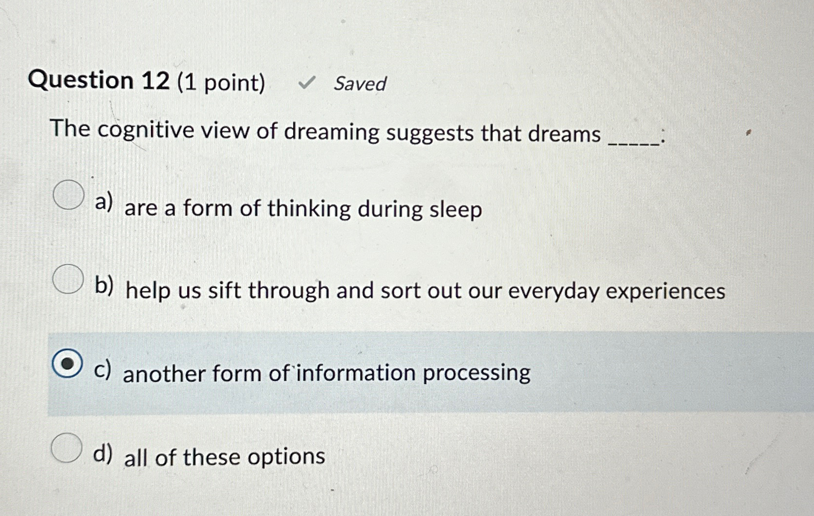 Solved Question 12 (1 point) SavedThe cognitive view of