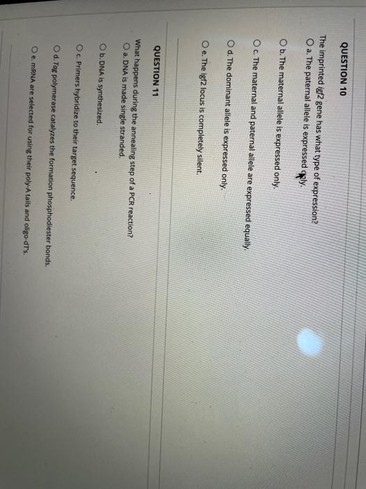 Solved QUESTION 10 The imprinted igf2 gene has what type of