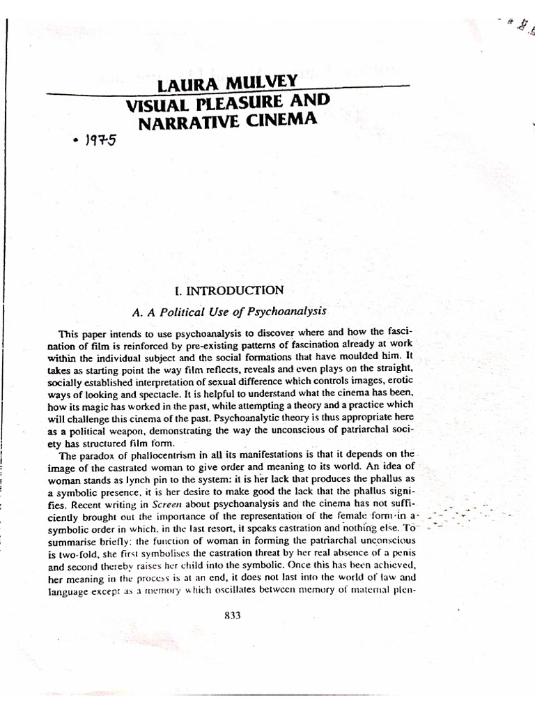 Visual Pleasure and Narrative Cinema 1975 Laura Mulvey