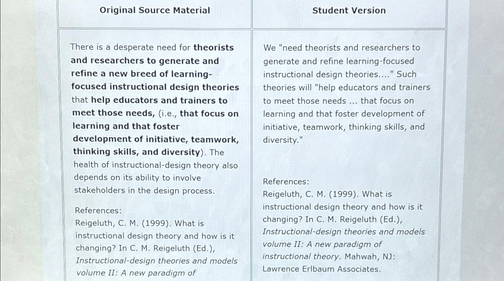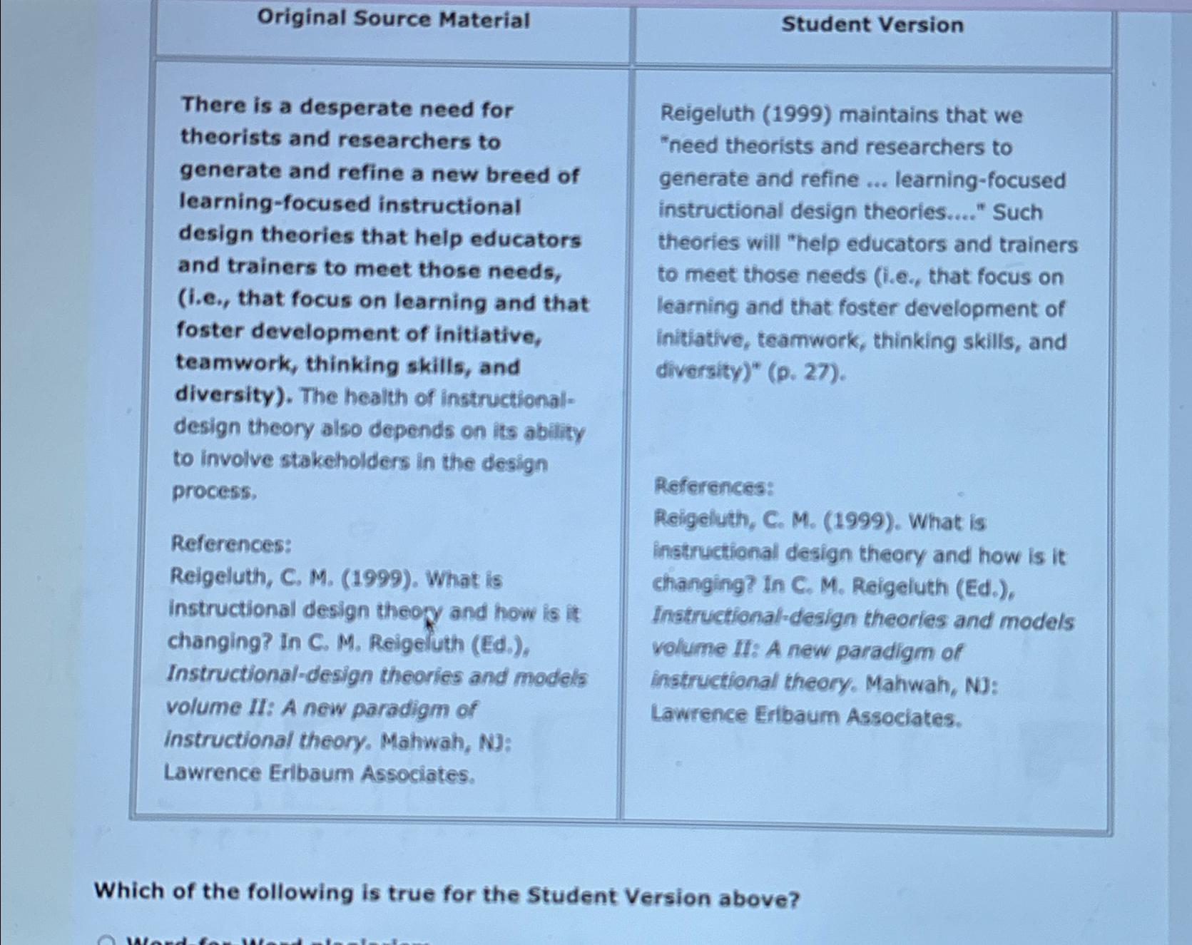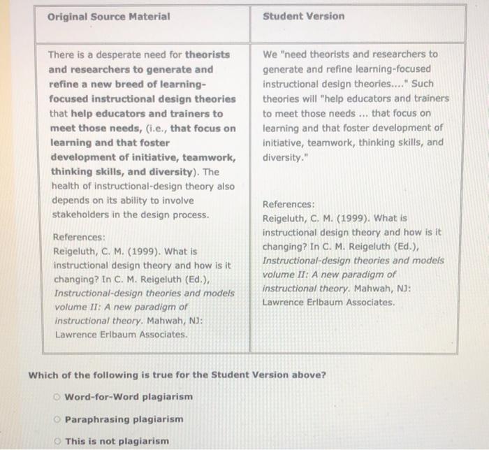Solved \table[[Original Source Material,Student