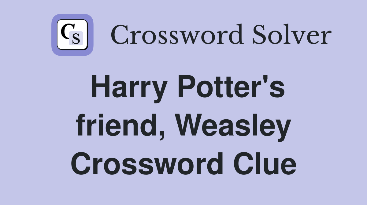 The crossword solver found 30 answers to weasley of harry potter, 3 letters crossword clue. Here is the answer for the crossword clue ___ weasley from the harry potter series featured on december 10, 2024. If you're looking for help with the ___ weasley of harry potter books clue in daily themed crossword, we have the answer to assist you..