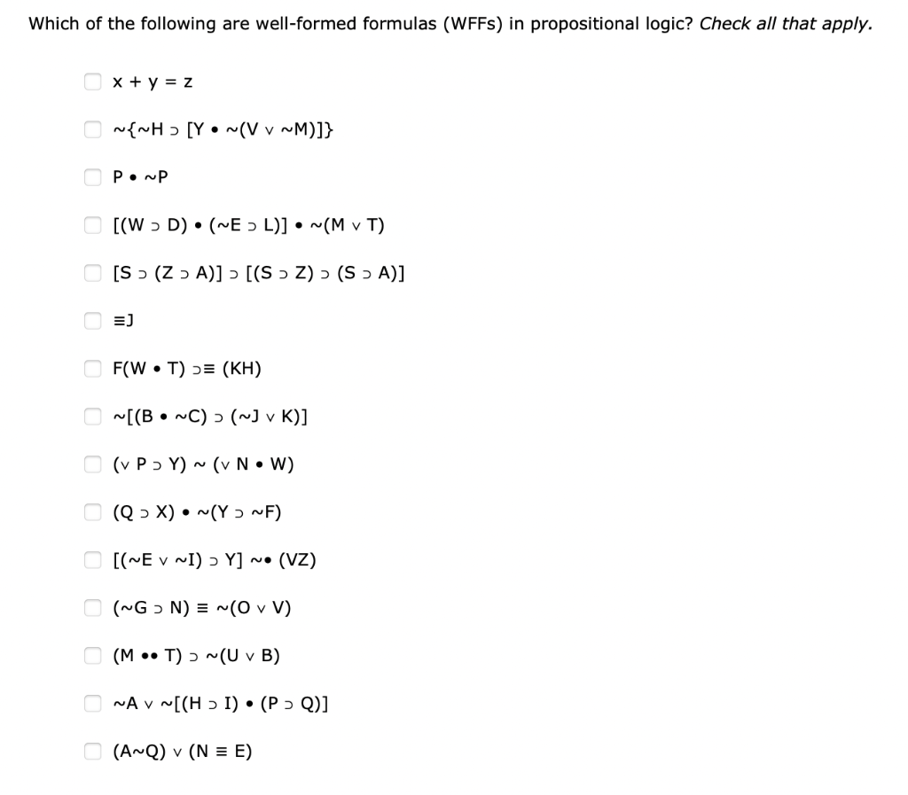 Well Formed Formula Logic - (a) ‘true’ (t) and ‘false’ (f) are wffs. Those which produce a proposition when their symbols are interpreted. Using these building blocks, we can now describe what a syntactically legal predicate logic expression looks like. To construct a wff for predicate logic, following rules are applicable: Collections of propositional variables, connectives, and brackets to which we can give a sensible meaning will be called well. As in boolean logic, we’ll. Propositional logic uses a symbolic “language” to represent the logical structure, or. Not all strings can represent propositions of the predicate logic.