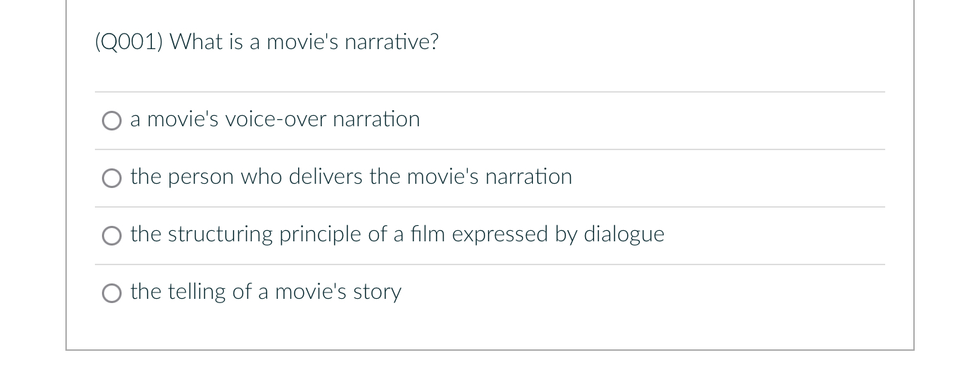 A narrative is a way of presenting connected events in order to tell a story. Narrative film, fictional film or fiction film is a motion picture that tells a fictional or fictionalized story, event or narrative. Film narrative refers to the structured series of events and character arcs that convey a story in a movie, aligning visual and auditory elements to.