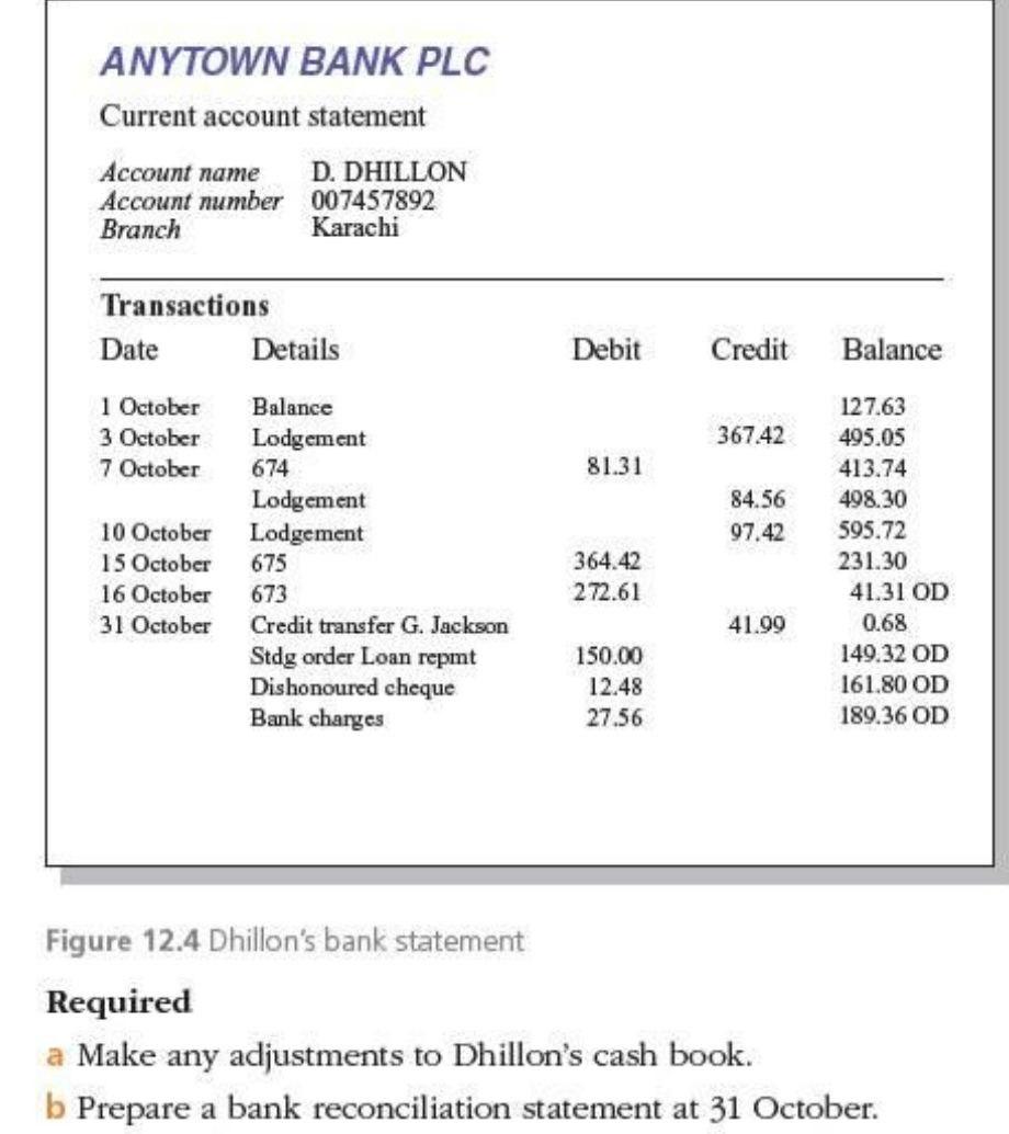 Solved ANYTOWN BANK PLC Current account statement Account