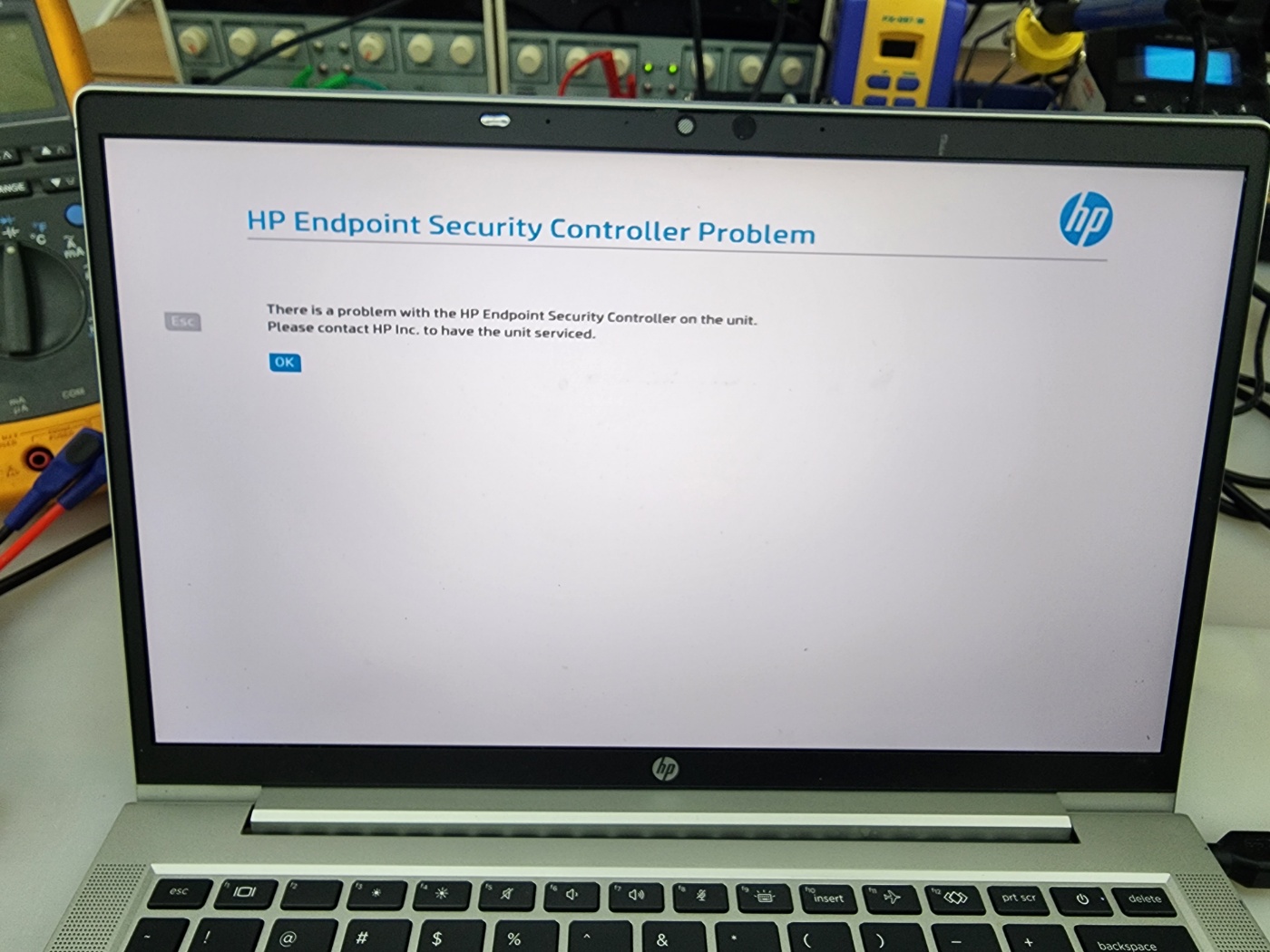 Just got two reports of hp endpoint security controller problem error messages on bootup. To elaborate, this machine (hp probook 440 g7) had its ec firmware. To have the unit serviced. There is a problem with the hp endpoint security controller on the unit.