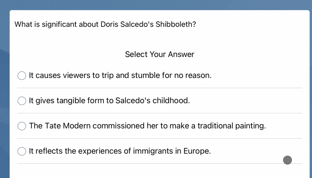 Shibboleth was an installation piece designed and completed by celebrated colombian artist doris salcedo at the turbine hall of the tate. Salcedo’s strength as an artist is her ability to balance the formal impact of shibboleth with its message, while preventing one from. Refers to the incident in the bible which describes the ephraimites being captured and executed by gileadites.