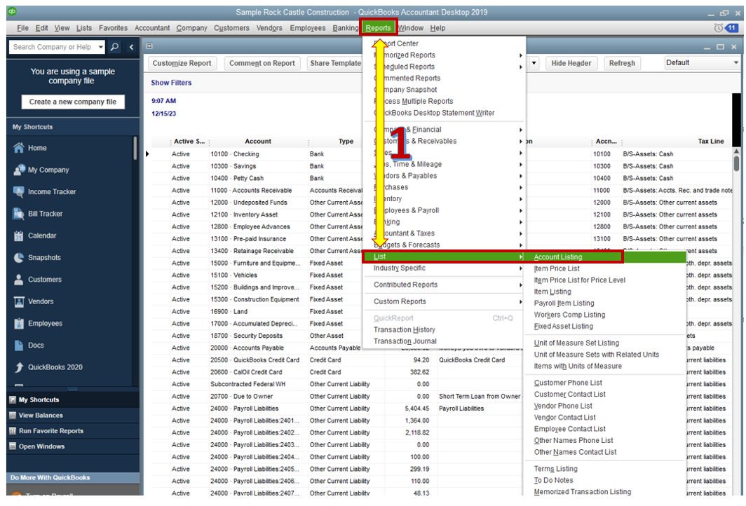 Find a General Ledger Account in QuickBooks Desktop workflow