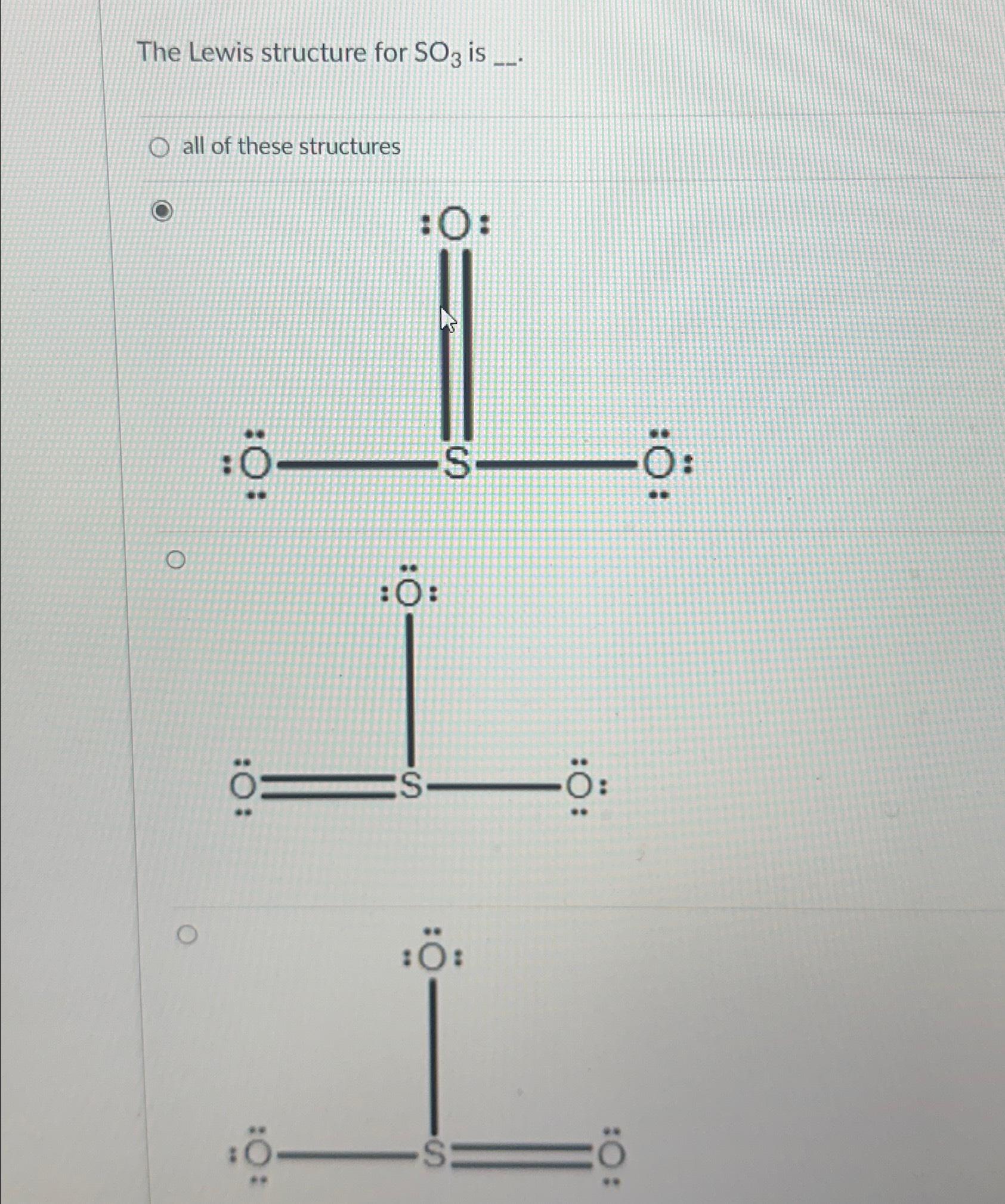SOLVED a. Give the Lewis electron dot structure for SO3. If there are