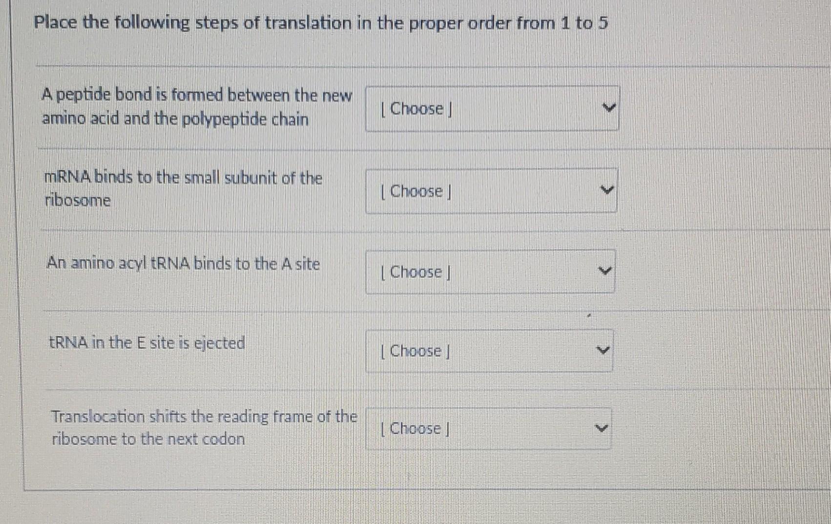 Solved For Transcription & Translation, indicate which of
