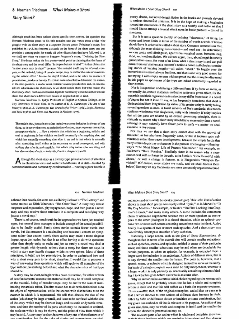 Friedman What Makes A Short Story Short PDF
