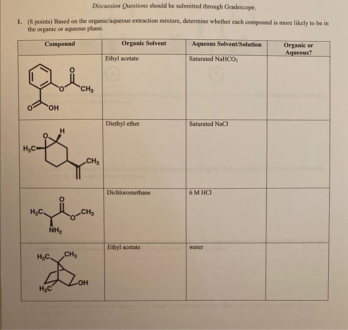 Solved 1. (8 points) Based on the organic/aqueous extraction