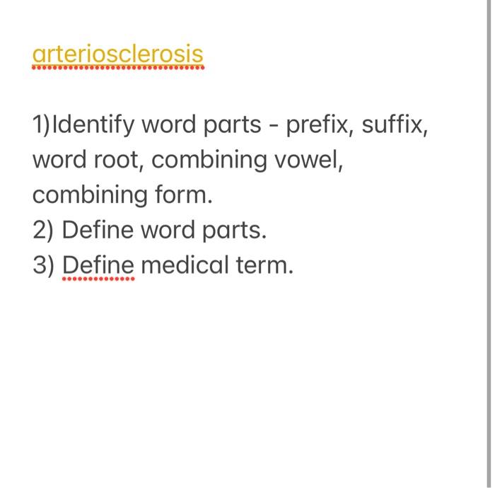 Solved 1) Identify word parts prefix, suffix, word root,