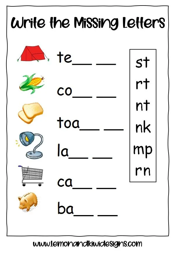 Write the missing letter words with pictures Free Printable Wor