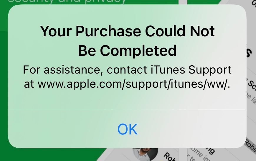 Then the words your purchase could not be completed. For assistance, contact itunes support at. A possible reason for seeing this message is apple cannot find a functioning payment method to use in making this. If you get the message your purchase could not be completed on your iphone or ipad, you can try these steps to troubleshoot.