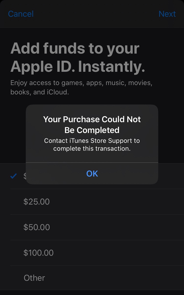 Your Purchase Could Not Be Completed Apple - Then the words your purchase could not be completed. A possible reason for seeing this message is apple cannot find a functioning payment method to use in making this. If you get the message your purchase could not be completed on your iphone or ipad, you can try these steps to troubleshoot. For assistance, contact itunes support at.